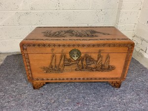 Mid 20th century chinese carved camphor wood chest or trunk.